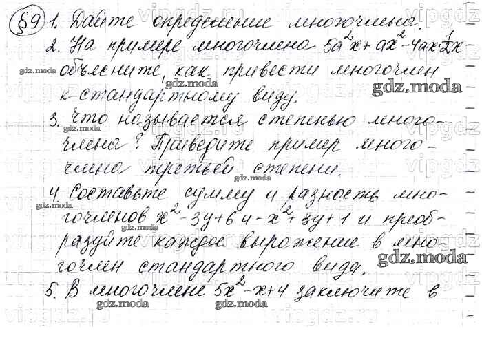 ОТВЕТ на задание № §9 Учебник по Алгебре 7 класс Макарычев