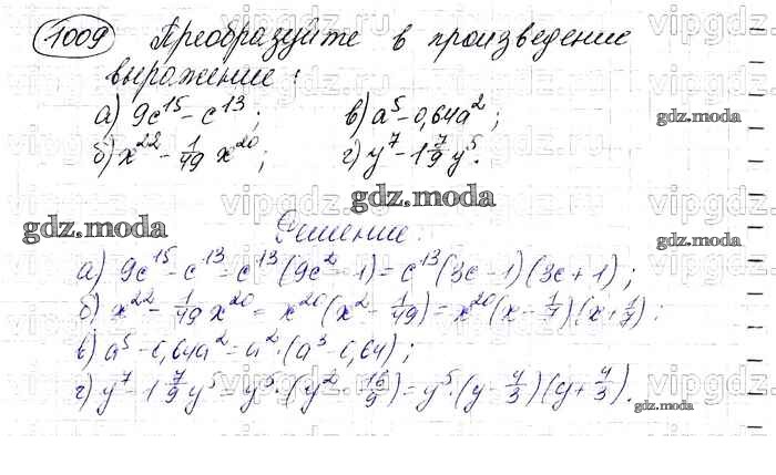 ОТВЕТ на задание № 1009 Учебник по Алгебре 7 класс Макарычев
