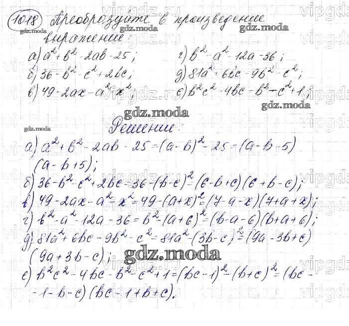 ОТВЕТ на задание № 1018 Учебник по Алгебре 7 класс Макарычев