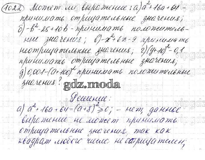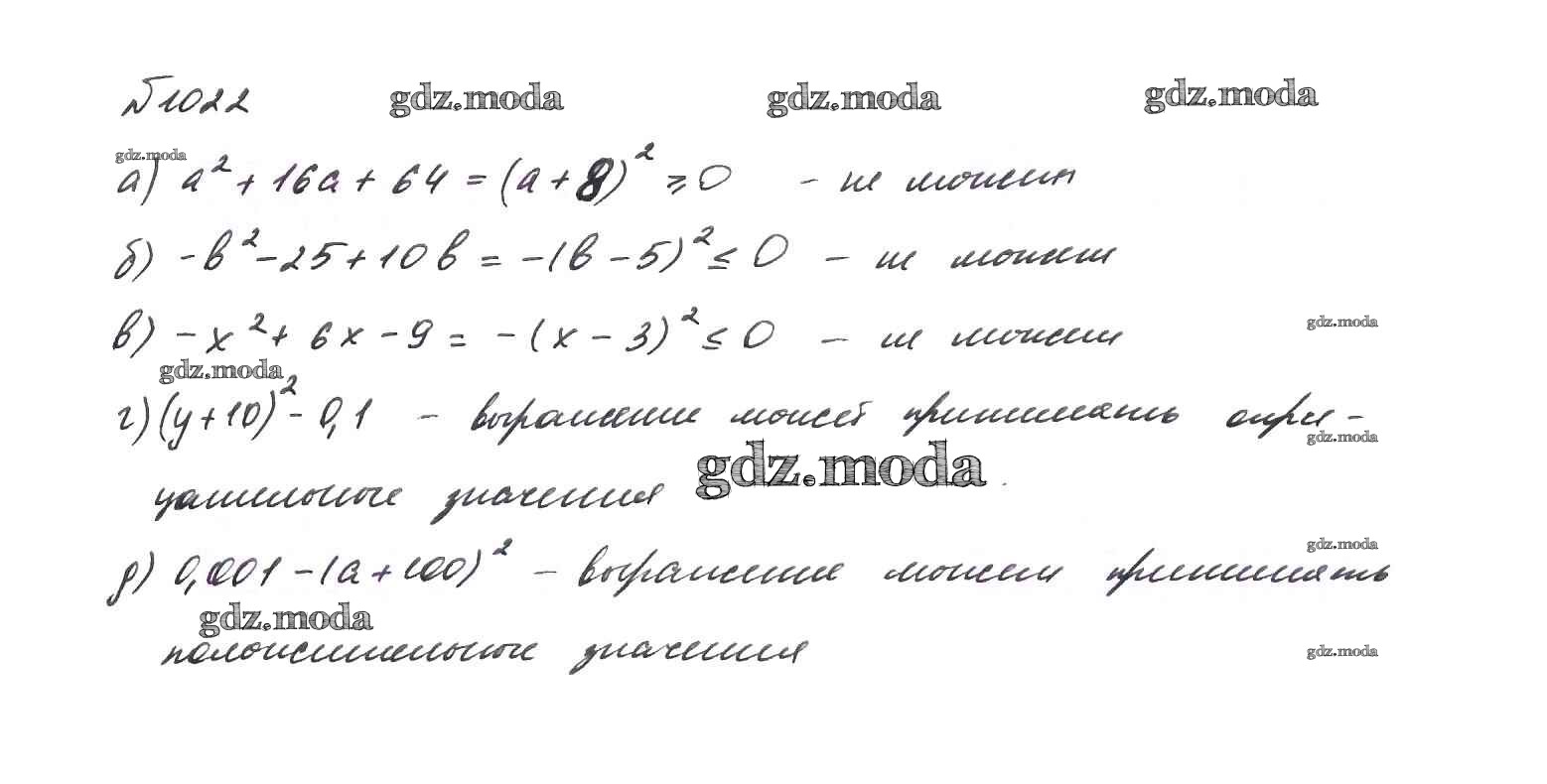 ОТВЕТ на задание № 1022 Учебник по Алгебре 7 класс Макарычев