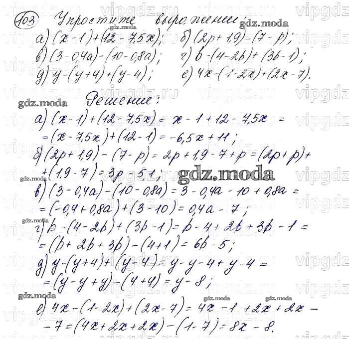ОТВЕТ на задание № 103 Учебник по Алгебре 7 класс Макарычев