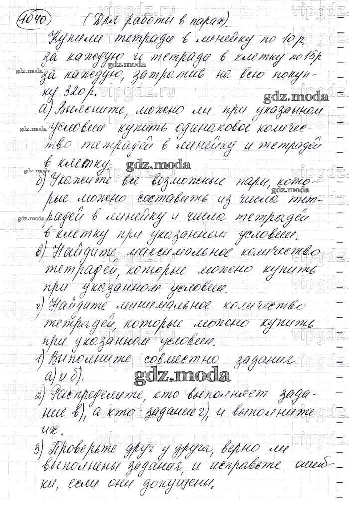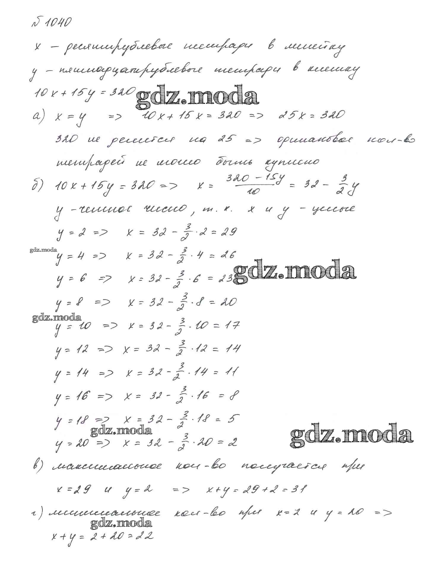 ОТВЕТ на задание № 1040 Учебник по Алгебре 7 класс Макарычев