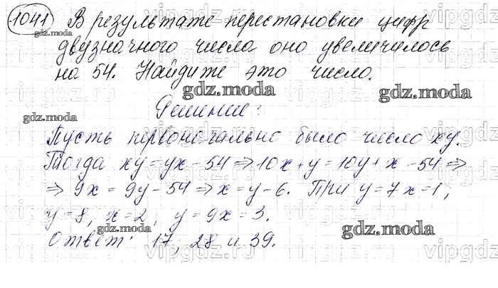 ОТВЕТ на задание № 1041 Учебник по Алгебре 7 класс Макарычев