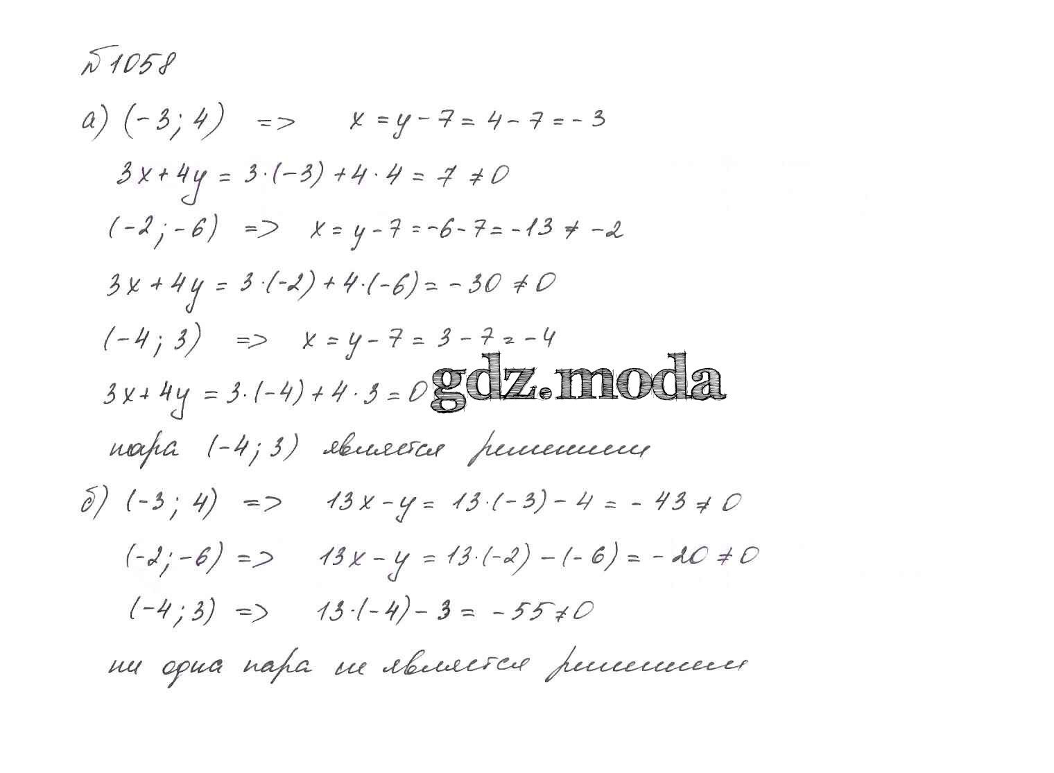 ОТВЕТ на задание № 1058 Учебник по Алгебре 7 класс Макарычев