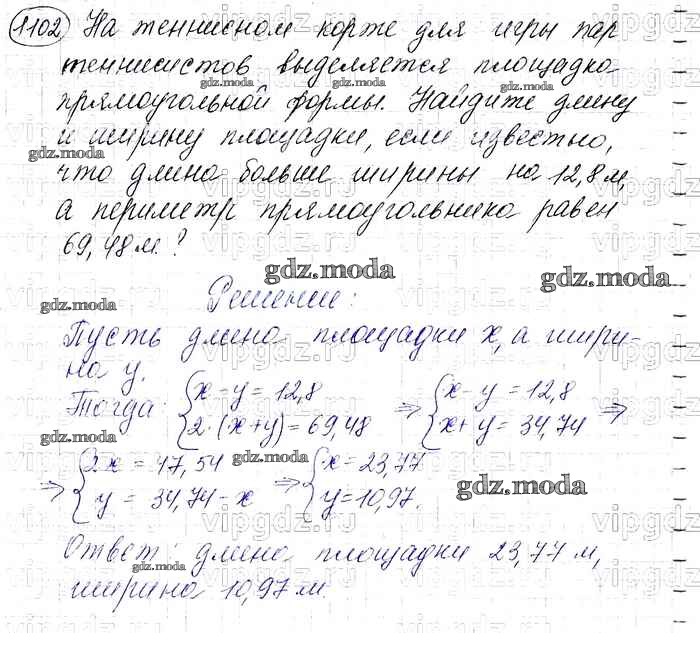 ОТВЕТ на задание № 1102 Учебник по Алгебре 7 класс Макарычев