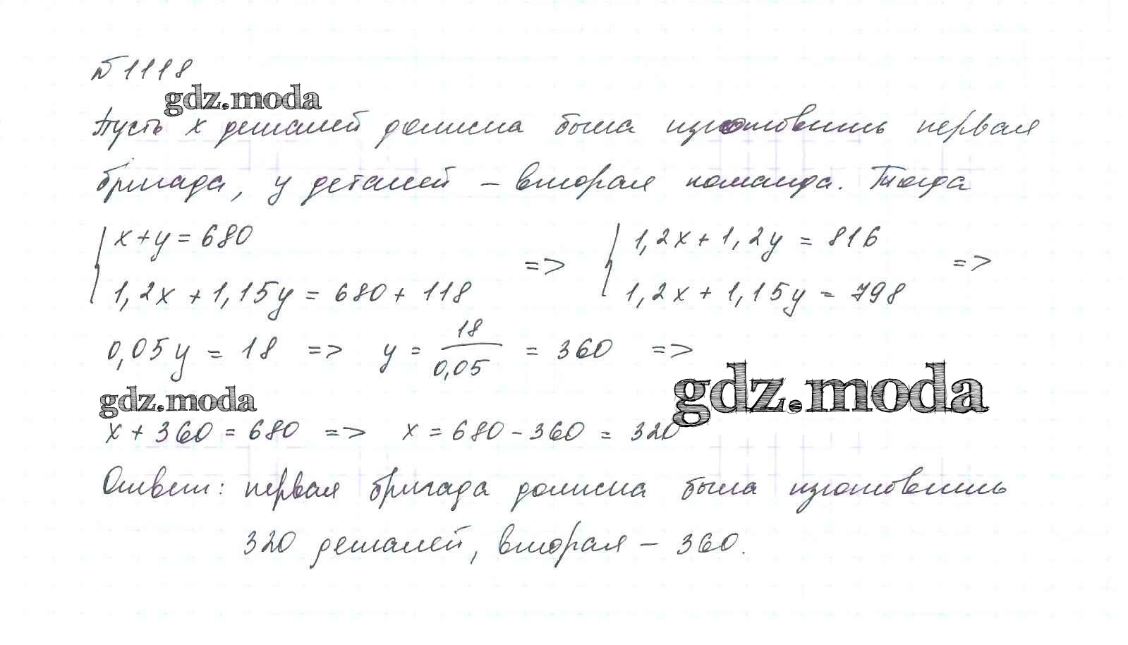 ОТВЕТ на задание № 1118 Учебник по Алгебре 7 класс Макарычев