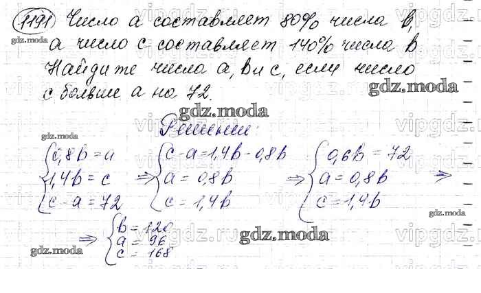 ОТВЕТ на задание № 1191 Учебник по Алгебре 7 класс Макарычев