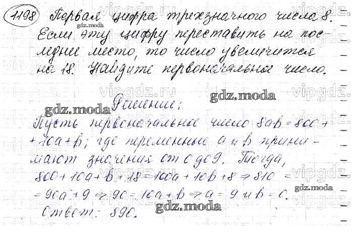ОТВЕТ на задание № 1198 Учебник по Алгебре 7 класс Макарычев