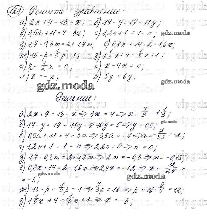ОТВЕТ на задание № 129 Учебник по Алгебре 7 класс Макарычев