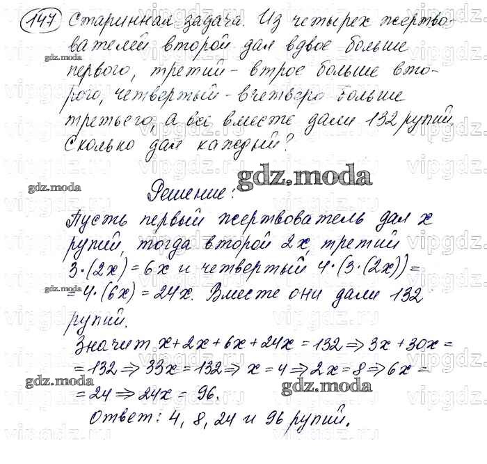ОТВЕТ на задание № 147 Учебник по Алгебре 7 класс Макарычев