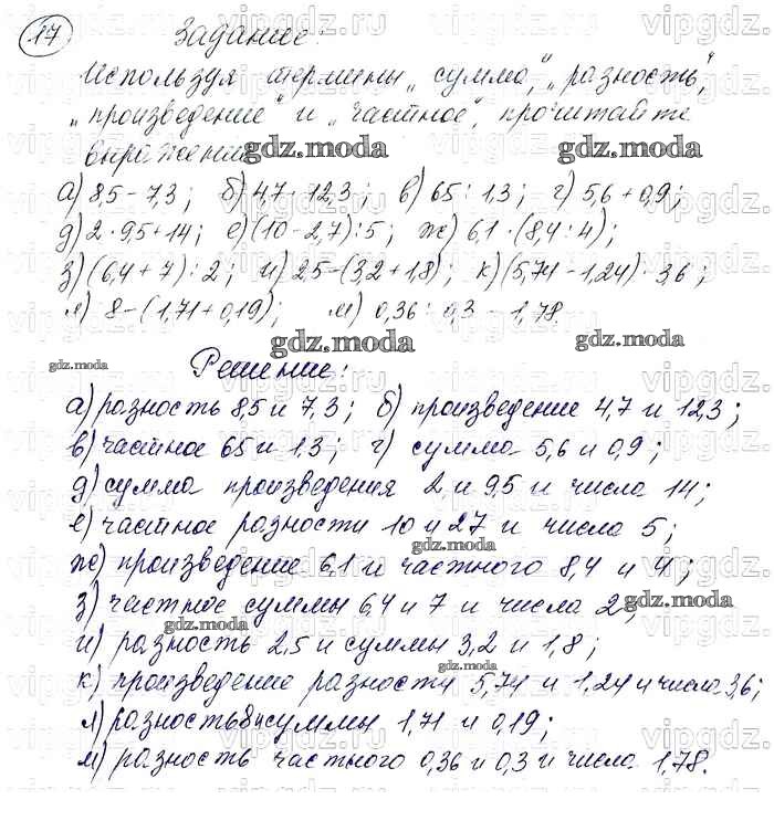 ОТВЕТ на задание № 17 Учебник по Алгебре 7 класс Макарычев