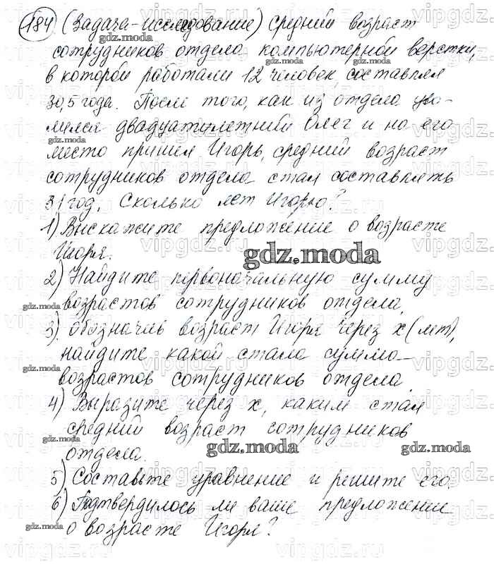 ОТВЕТ на задание № 184 Учебник по Алгебре 7 класс Макарычев