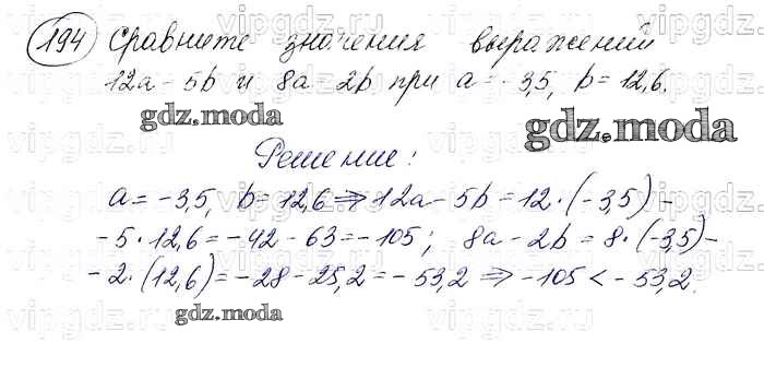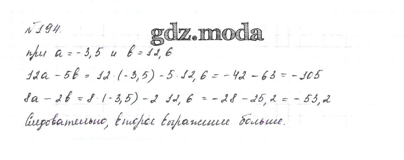 ОТВЕТ на задание № 194 Учебник по Алгебре 7 класс Макарычев