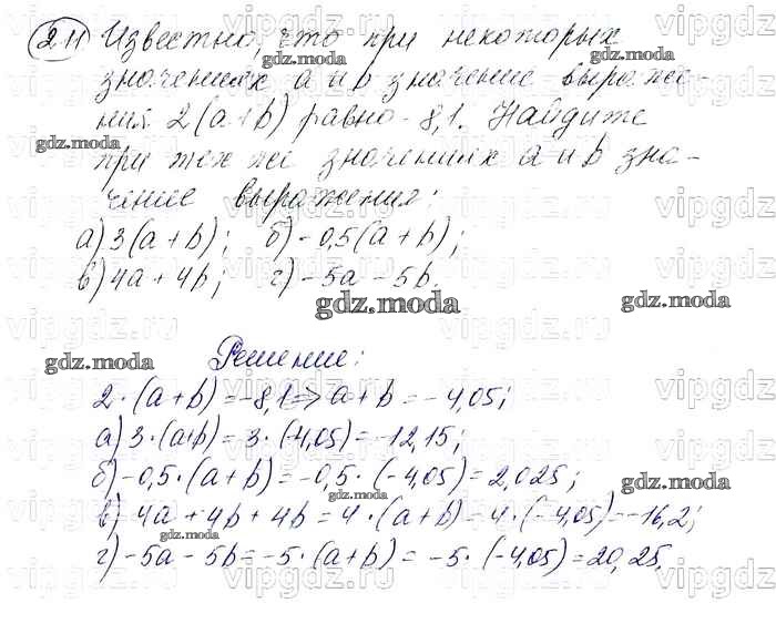 ОТВЕТ на задание № 211 Учебник по Алгебре 7 класс Макарычев