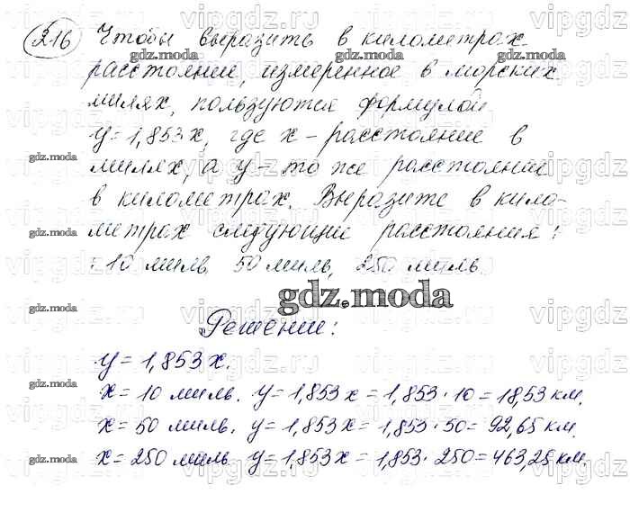 ОТВЕТ на задание № 216 Учебник по Алгебре 7 класс Макарычев