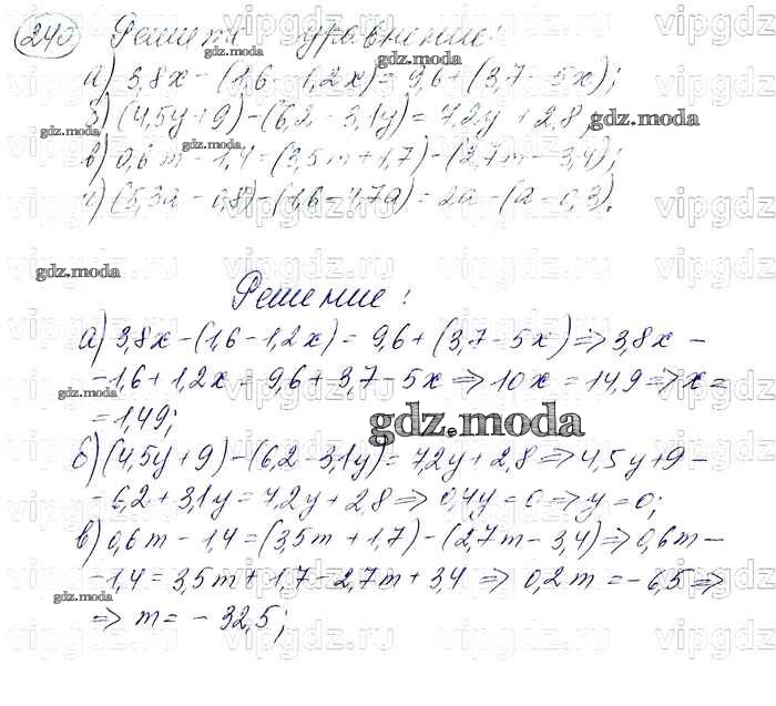 ОТВЕТ на задание № 240 Учебник по Алгебре 7 класс Макарычев
