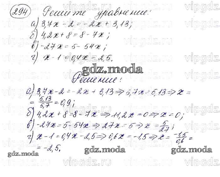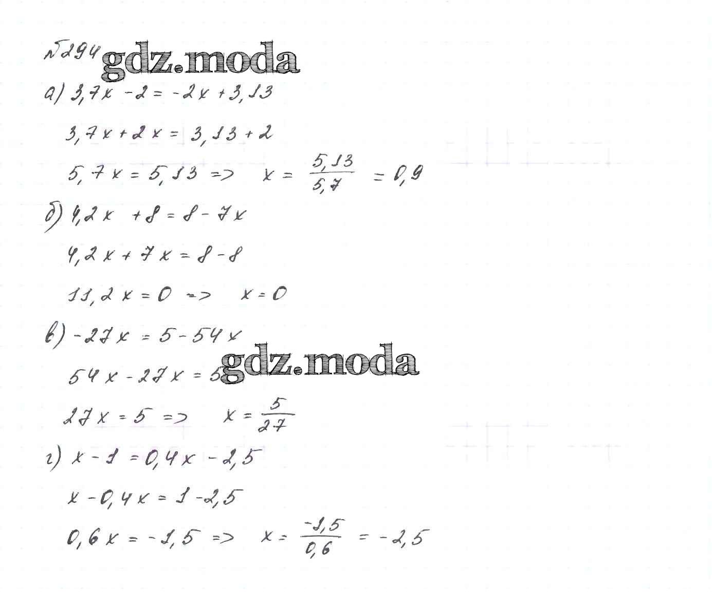 ОТВЕТ на задание № 294 Учебник по Алгебре 7 класс Макарычев