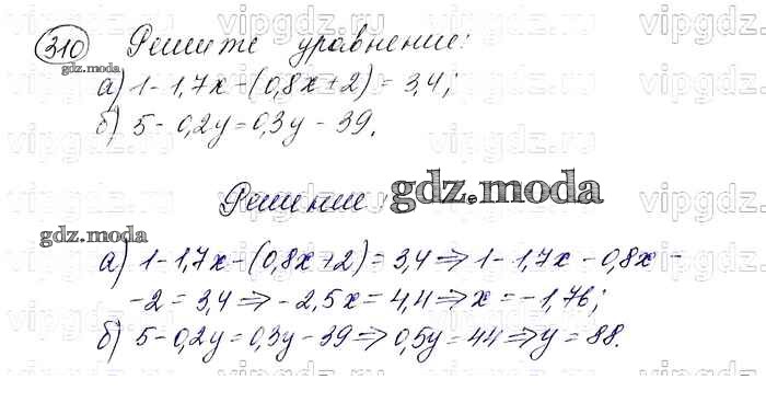 ОТВЕТ на задание № 310 Учебник по Алгебре 7 класс Макарычев