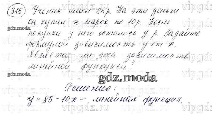 ОТВЕТ на задание № 315 Учебник по Алгебре 7 класс Макарычев