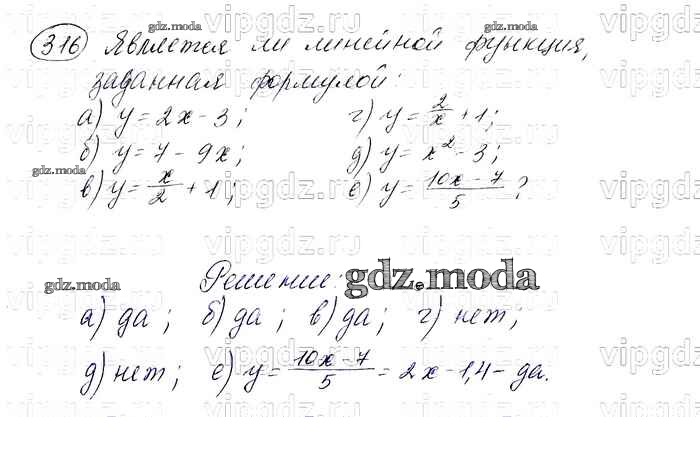 ОТВЕТ на задание № 316 Учебник по Алгебре 7 класс Макарычев