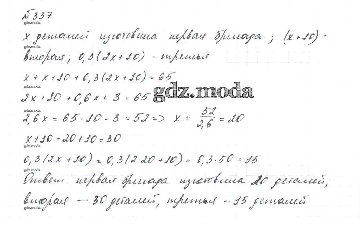 ОТВЕТ на задание № 337 Учебник по Алгебре 7 класс Макарычев
