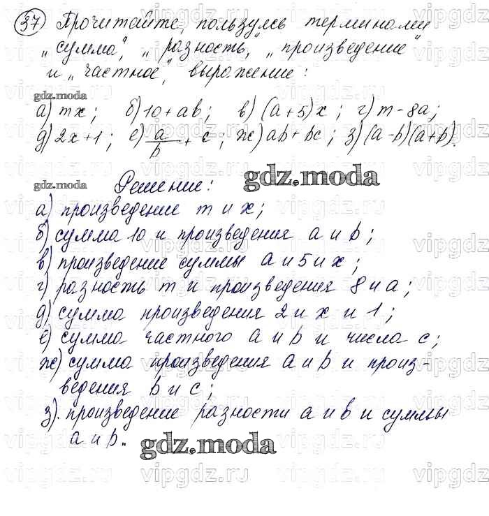 ОТВЕТ на задание № 37 Учебник по Алгебре 7 класс Макарычев