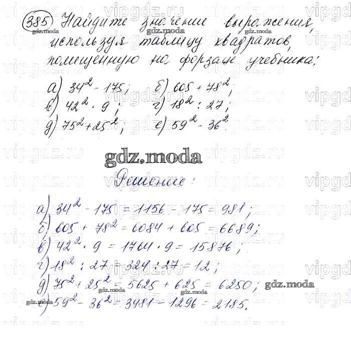 ОТВЕТ на задание № 385 Учебник по Алгебре 7 класс Макарычев