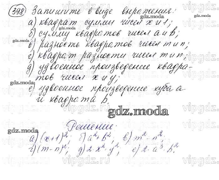 ОТВЕТ на задание № 398 Учебник по Алгебре 7 класс Макарычев
