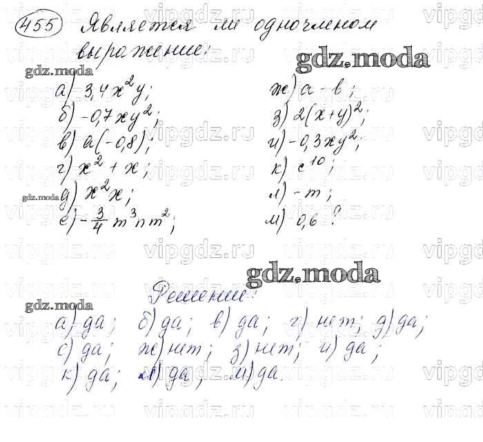 ОТВЕТ на задание № 455 Учебник по Алгебре 7 класс Макарычев