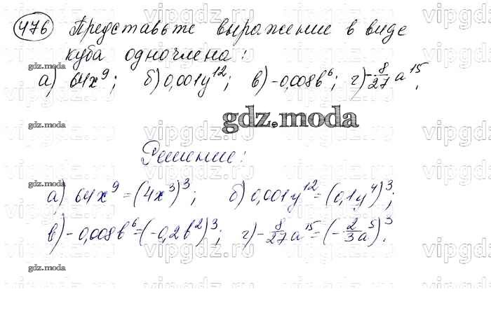 ОТВЕТ на задание № 476 Учебник по Алгебре 7 класс Макарычев