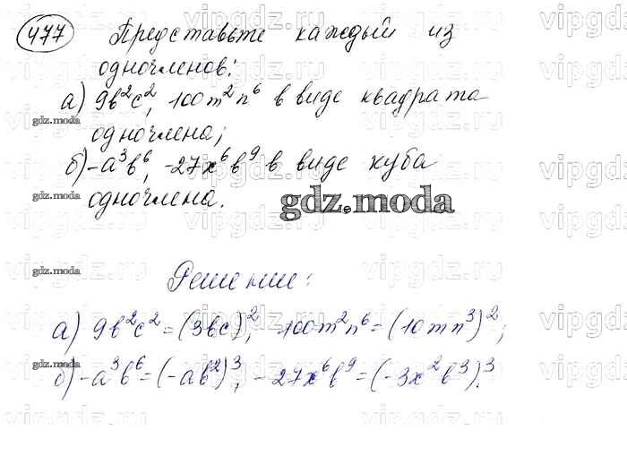 ОТВЕТ на задание № 477 Учебник по Алгебре 7 класс Макарычев