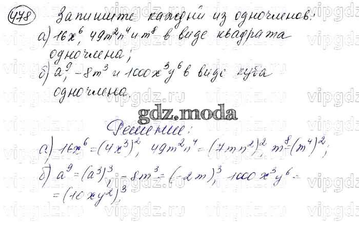 ОТВЕТ на задание № 478 Учебник по Алгебре 7 класс Макарычев