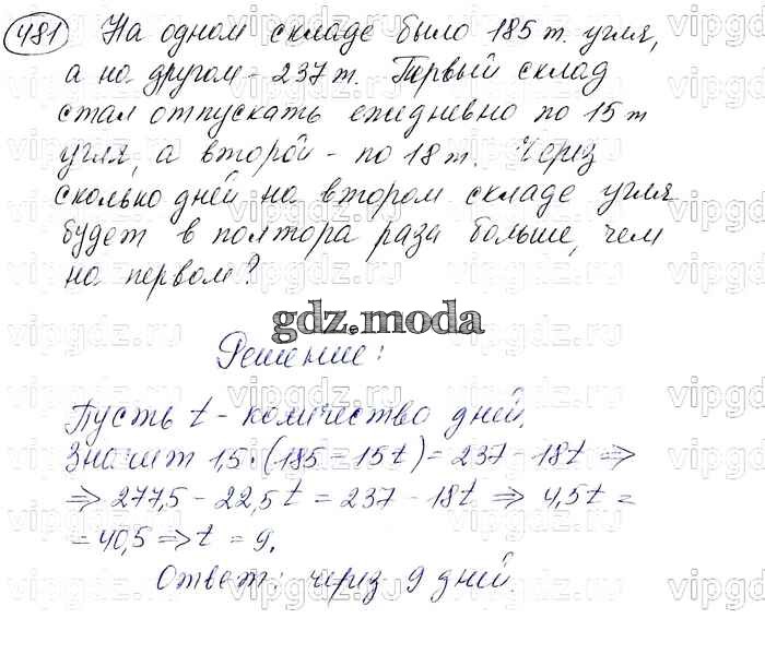 ОТВЕТ на задание № 481 Учебник по Алгебре 7 класс Макарычев