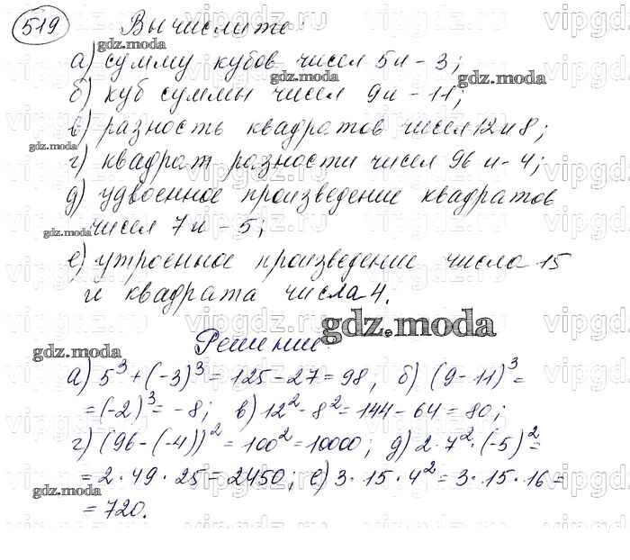 ОТВЕТ на задание № 519 Учебник по Алгебре 7 класс Макарычев