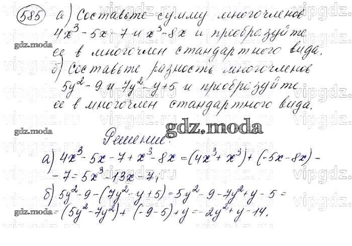 ОТВЕТ на задание № 585 Учебник по Алгебре 7 класс Макарычев