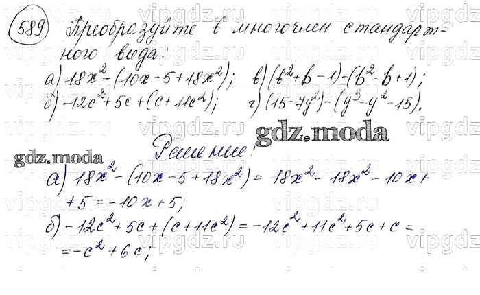 ОТВЕТ на задание № 589 Учебник по Алгебре 7 класс Макарычев