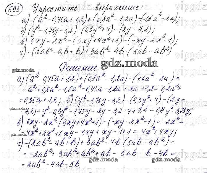 ОТВЕТ на задание № 595 Учебник по Алгебре 7 класс Макарычев