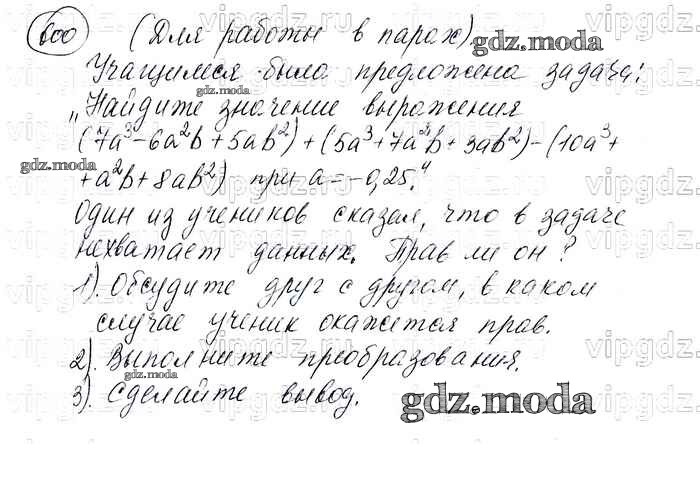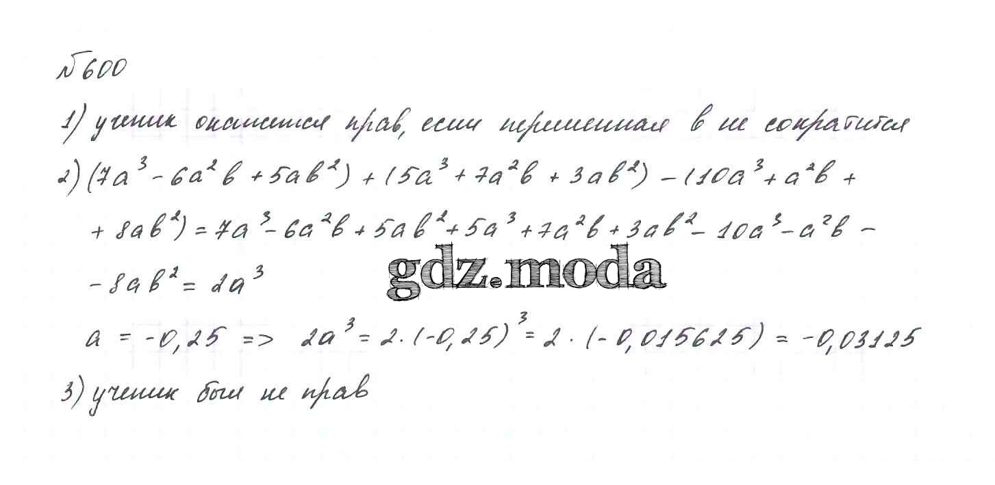 ОТВЕТ на задание № 600 Учебник по Алгебре 7 класс Макарычев