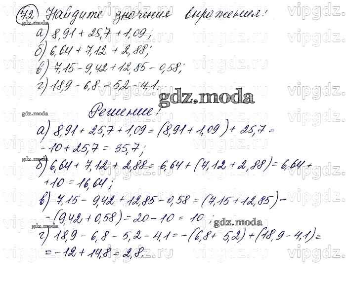 ОТВЕТ на задание № 72 Учебник по Алгебре 7 класс Макарычев
