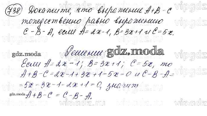 ОТВЕТ на задание № 738 Учебник по Алгебре 7 класс Макарычев