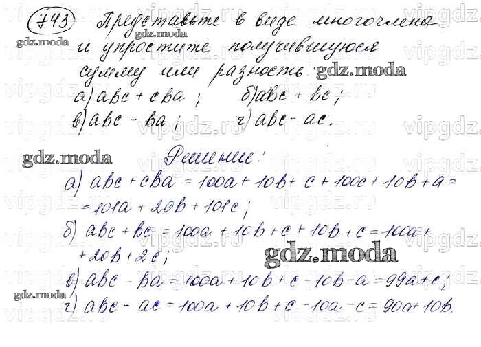 ОТВЕТ на задание № 743 Учебник по Алгебре 7 класс Макарычев