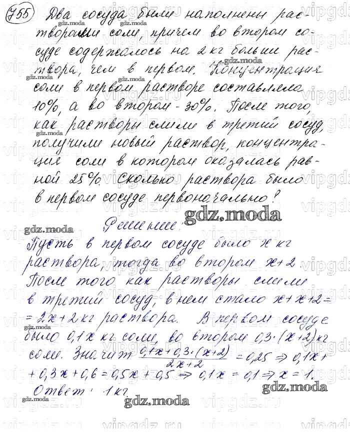 ОТВЕТ на задание № 755 Учебник по Алгебре 7 класс Макарычев