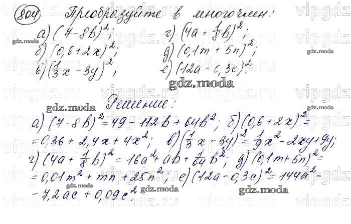ОТВЕТ на задание № 804 Учебник по Алгебре 7 класс Макарычев