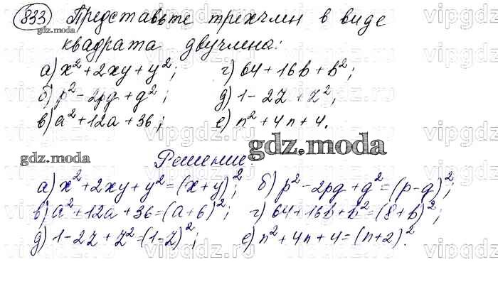 ОТВЕТ на задание № 833 Учебник по Алгебре 7 класс Макарычев