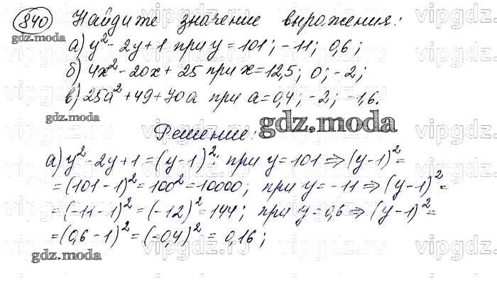 ОТВЕТ на задание № 840 Учебник по Алгебре 7 класс Макарычев
