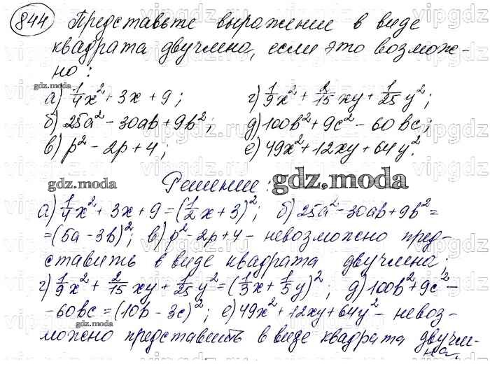 ОТВЕТ на задание № 844 Учебник по Алгебре 7 класс Макарычев