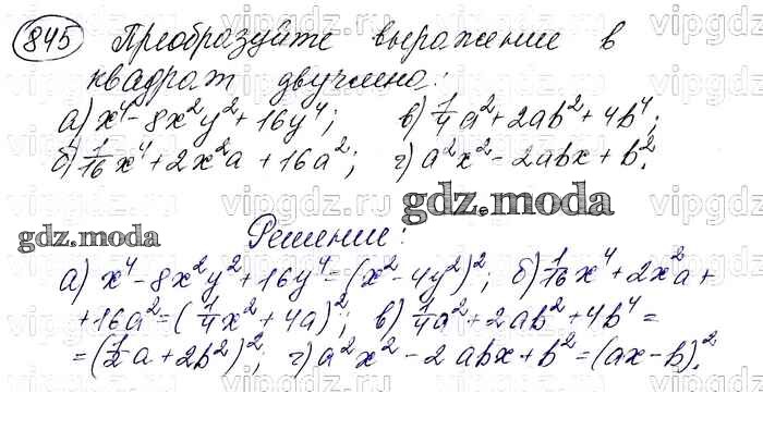 ОТВЕТ на задание № 845 Учебник по Алгебре 7 класс Макарычев