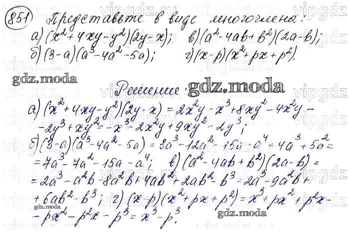 ОТВЕТ на задание № 851 Учебник по Алгебре 7 класс Макарычев