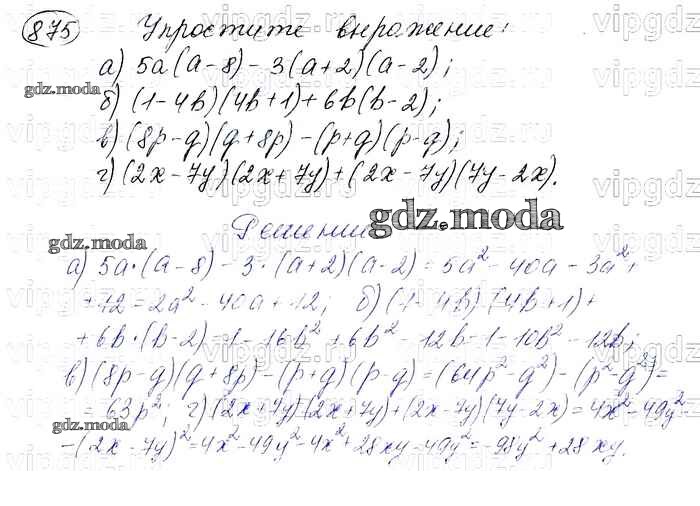 ОТВЕТ на задание № 875 Учебник по Алгебре 7 класс Макарычев