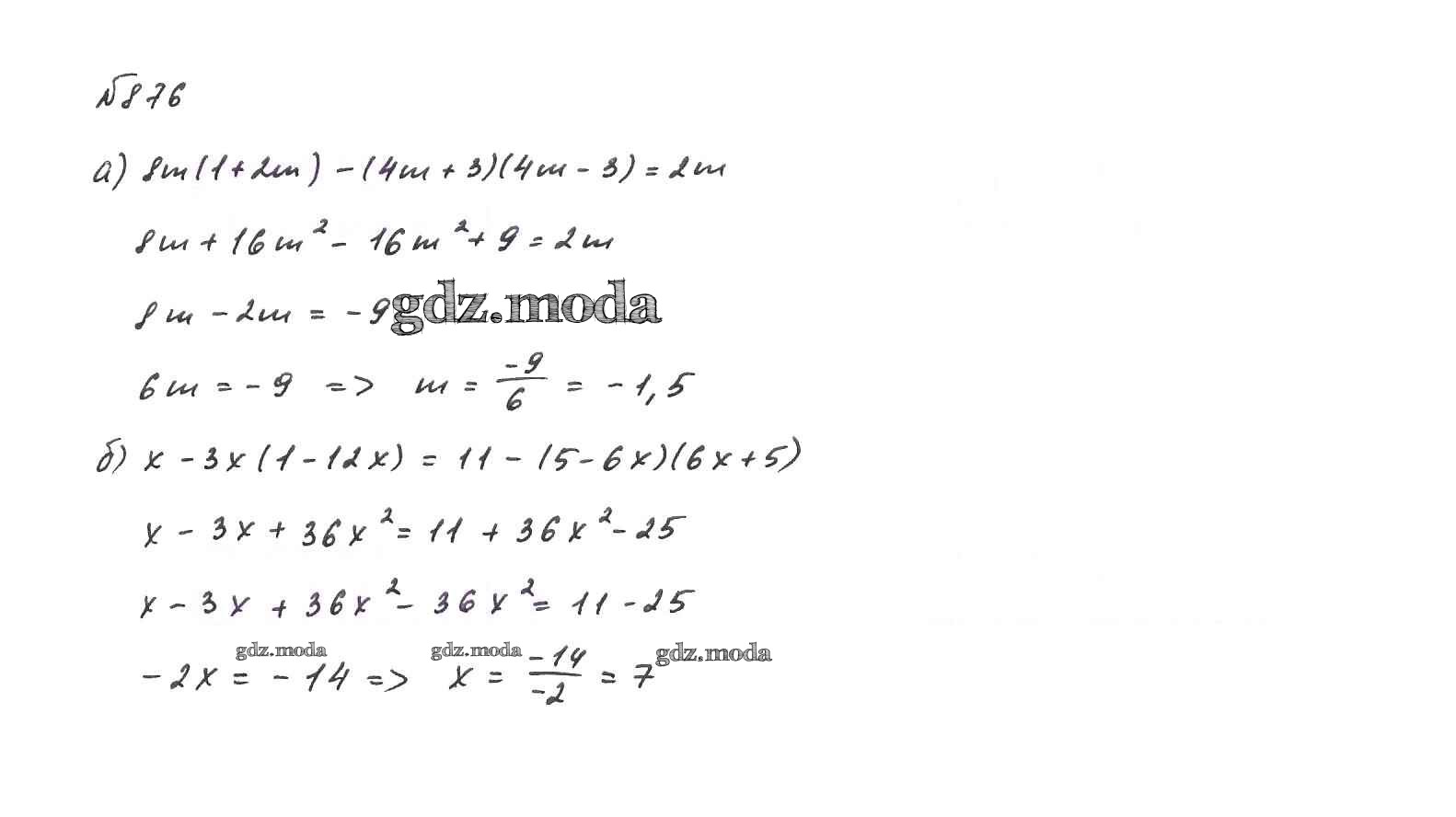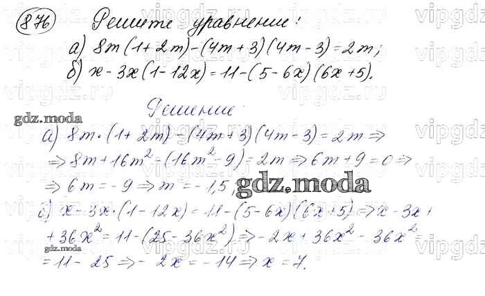ОТВЕТ на задание № 876 Учебник по Алгебре 7 класс Макарычев